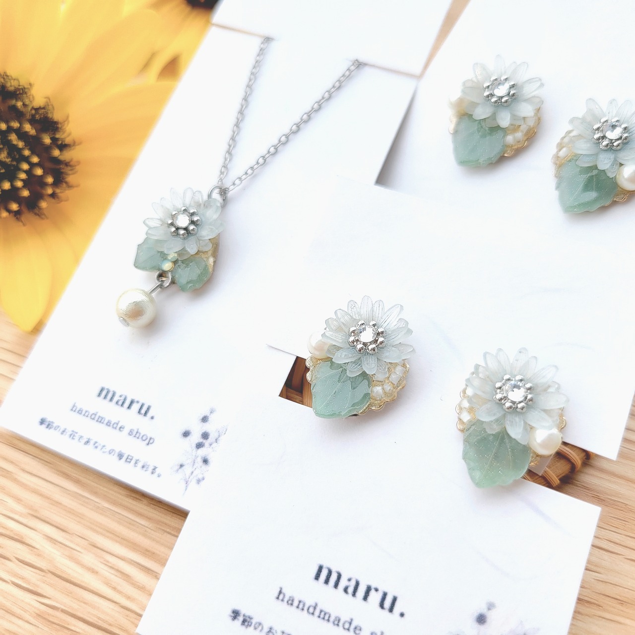 透き通る淡いブルーが夏らしいアクセサリーです。