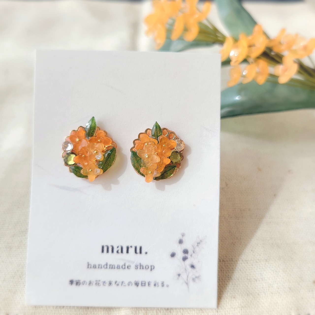 儚いお花です。プラ板で出来た金木犀は、どんな季節でもオレンジ色のお花を楽しめます♪