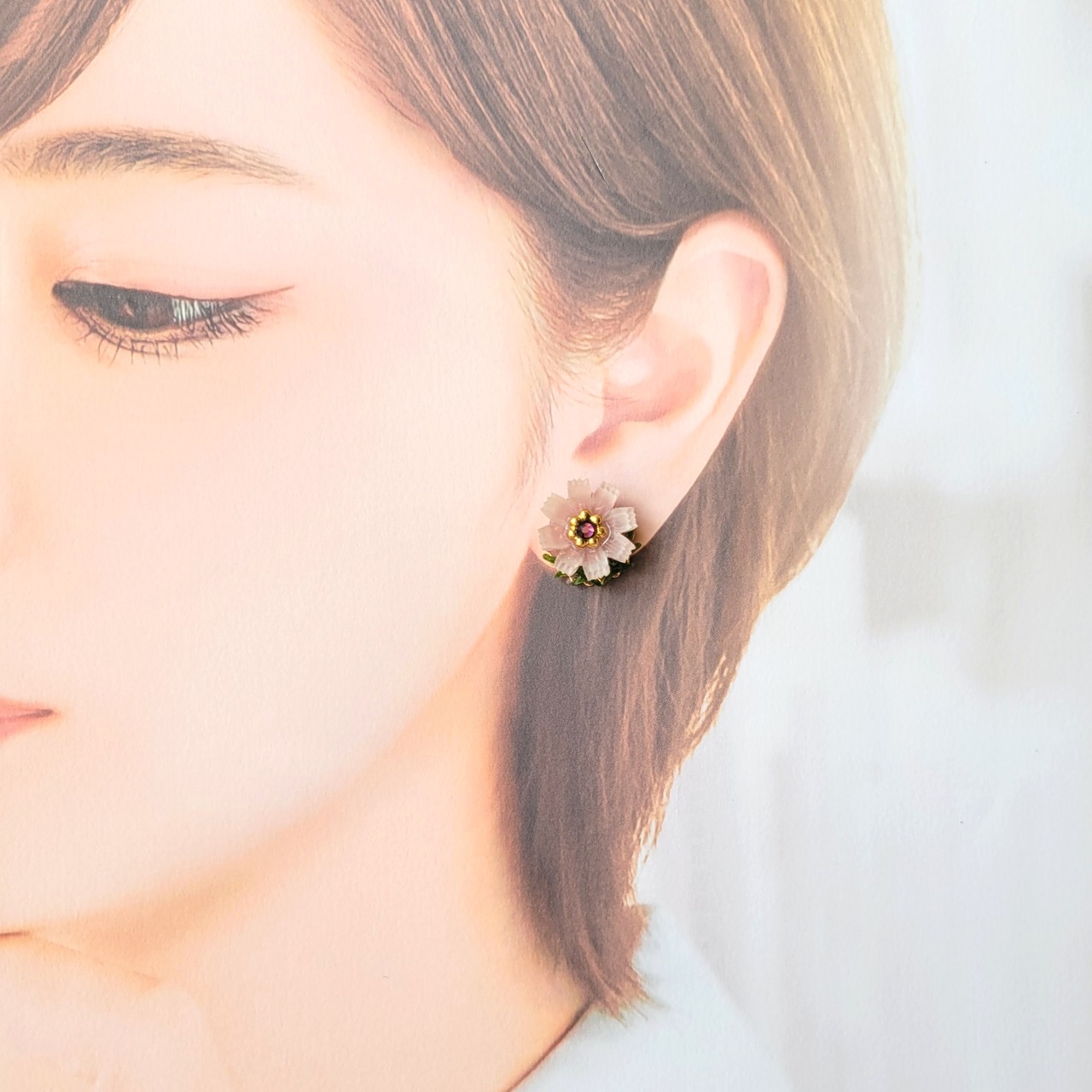 中央の推しべ部分は、黄色ではなくバーガンディ色のストーンをあしらいました。