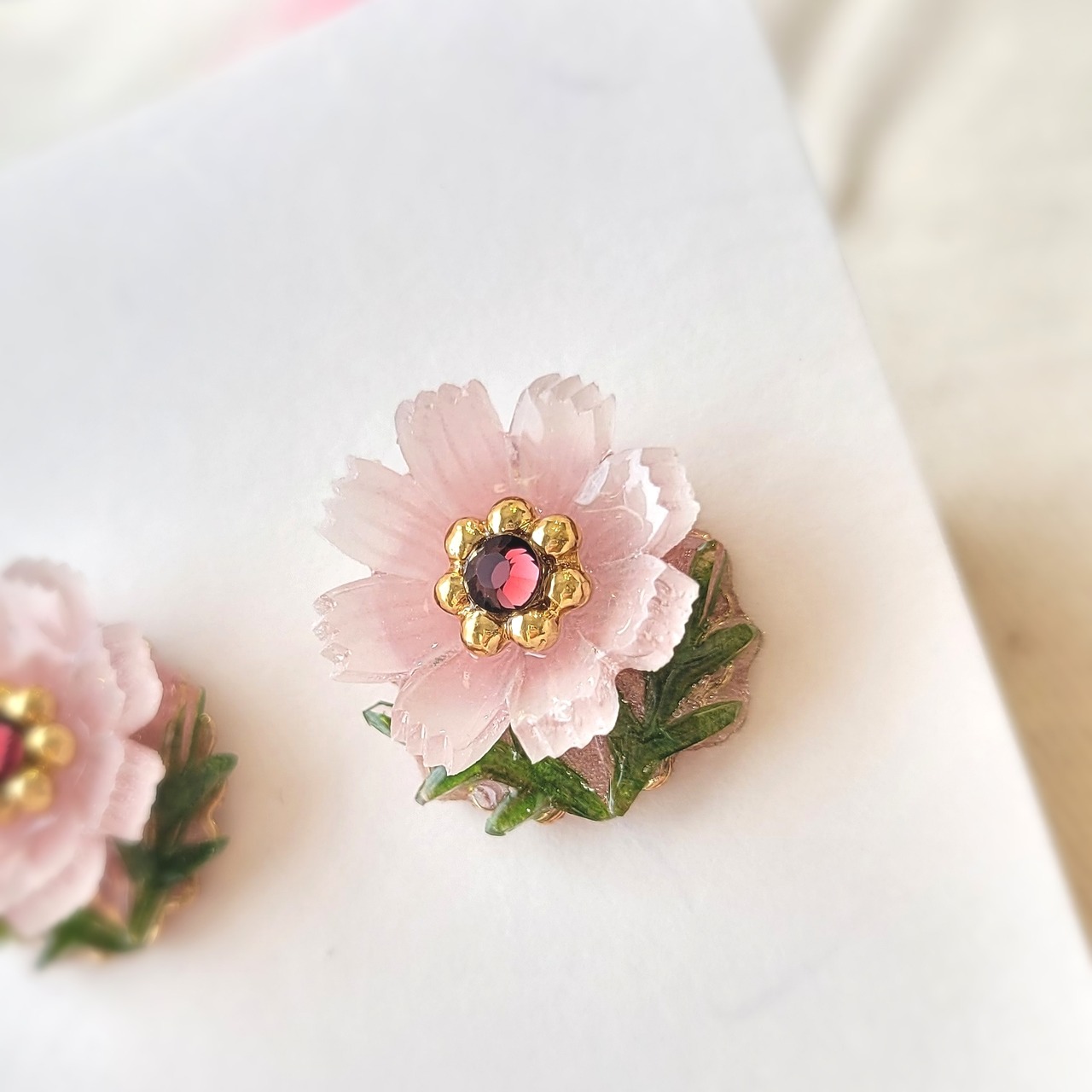 ピンクに少しブラウンを混ぜて色付けしたお花と