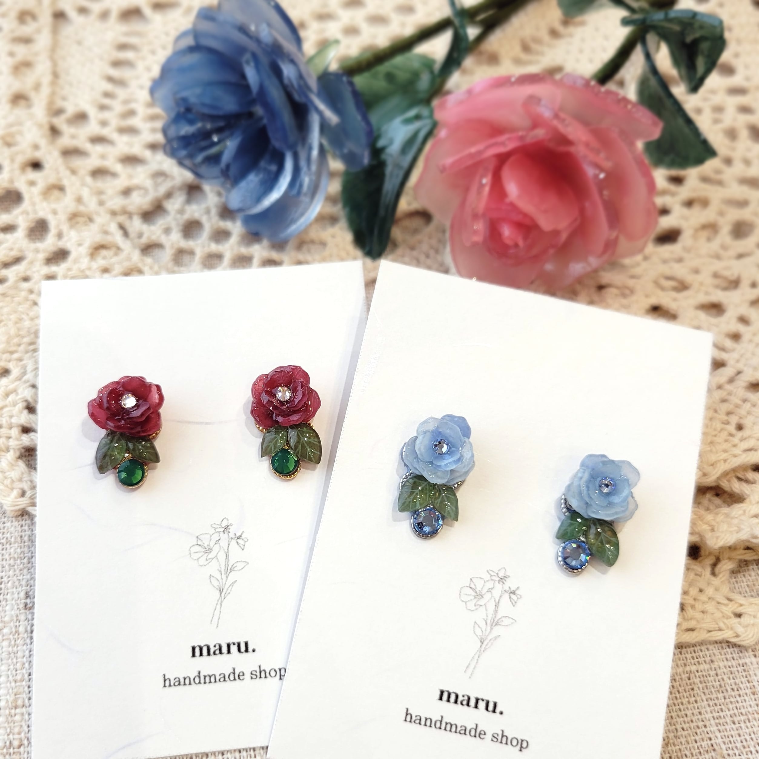 バラをモチーフにした、小さめなピアス/イヤリングです。
