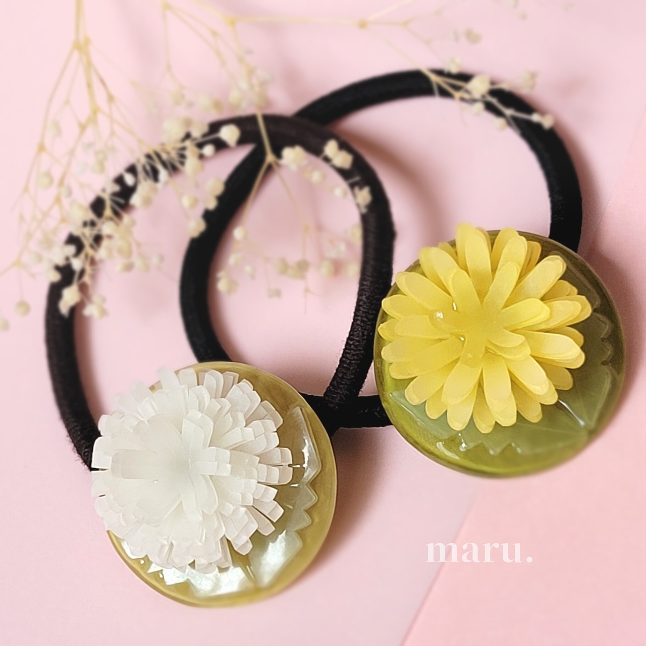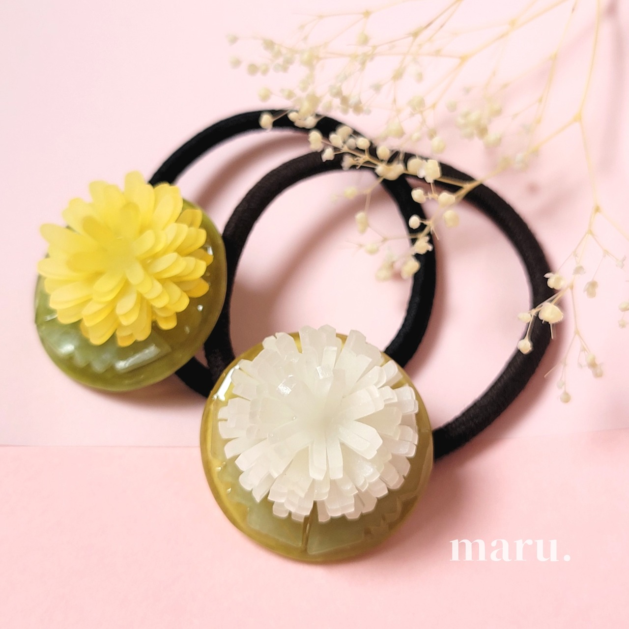 たんぽぽと綿毛のヘアゴムです。